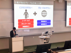 第1部では、株式会社キャリタスの上田様より「企業が求めるグローバル日本人人材。グローバル企業で求められる力とは。」と題した講演をいただき、グローバル企業で求められるスキルや、今後大学教育や留学プログラムに求められる要素について具体的な示唆が示されました。